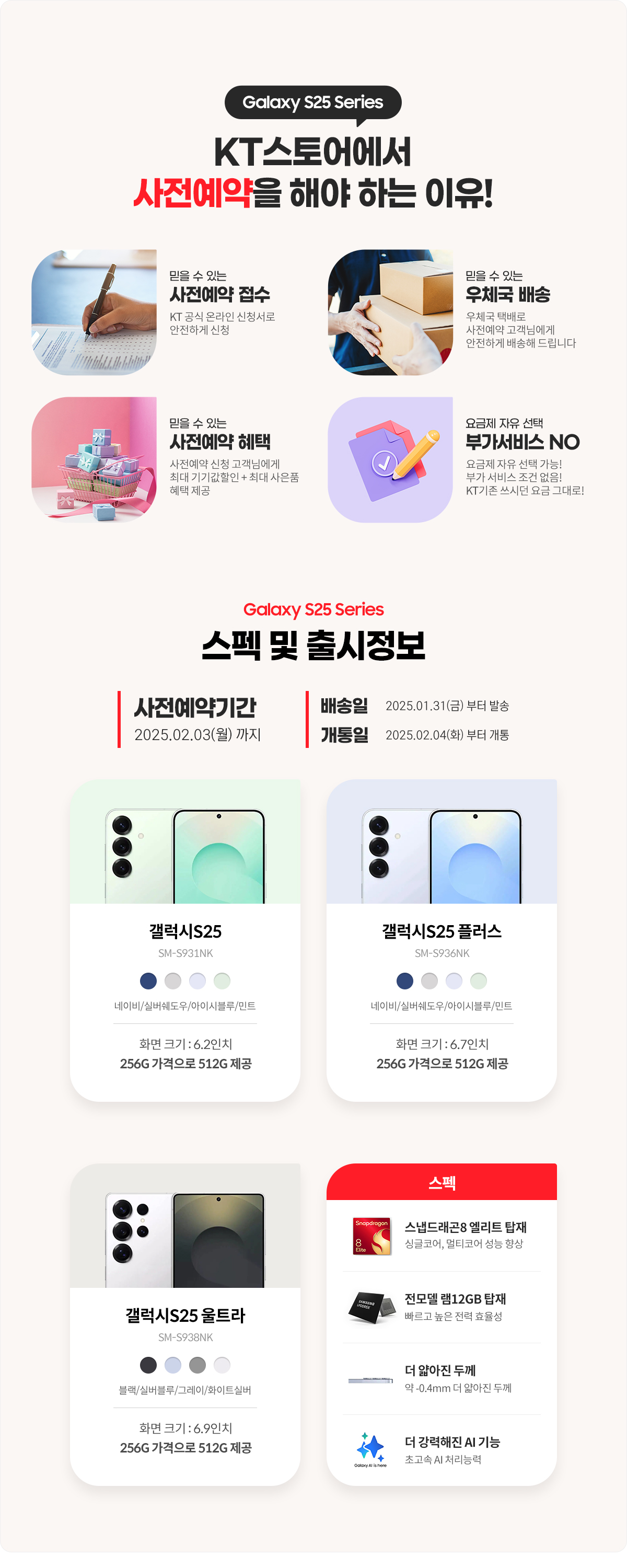 ● 즉시 할인 : 갤럭시 S25 시리즈를 사전예약하는 고객은 최대 400,000원의 즉시 할인을 받을 수 있습니다.