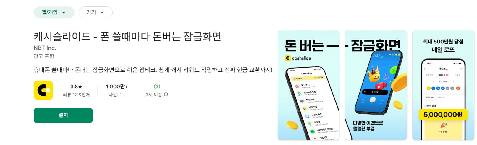 캐시슬라이드·튜브캐시·해피스크린 대체 앱