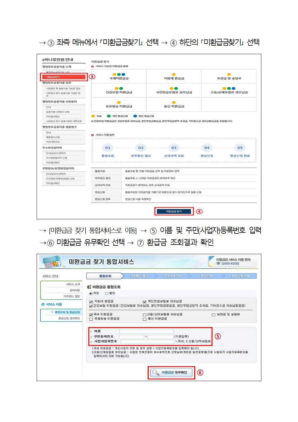 [4] 정부민원안내콜센터 - 미환급금 찾기 서비스가 있다던데 어디에서 확인할 수 있나요?