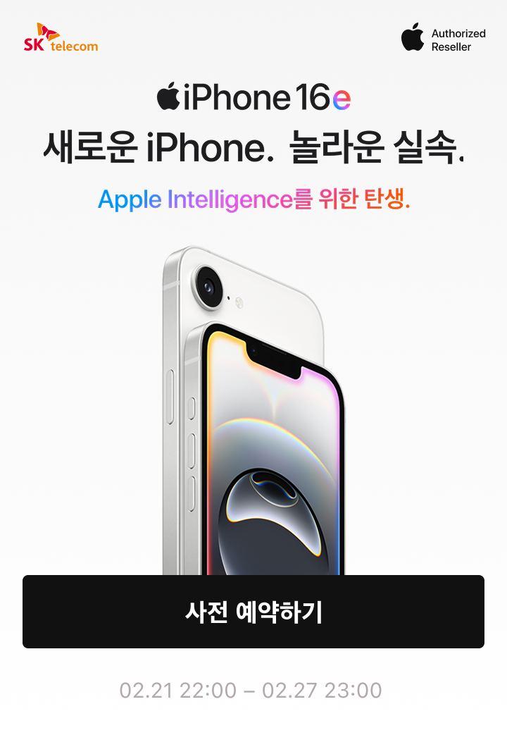 아이폰 16e의 사전예약은 2월 21일부터 시작되어 2월 28일까지 진행됩니다. 사전예약을 원하시는 분들은 아래의 방법을 따라 주시기 바랍니다.