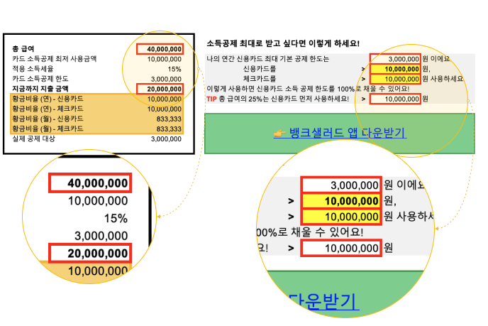 마지막으로, 신용카드 및 체크카드 사용액에 대한 조건과 세금 환급 기준을 잘 이해하고 있어야 하며, 이를 통해 최대한의 세액 공제를 받을 수 있도록 해야 합니다.