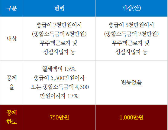2023년 세법개정(안)에 월세세액공제한도가 확대됩니다.