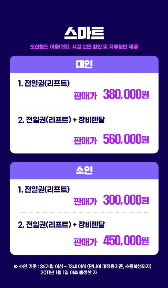 ● 스마트 패스 : 성인 570,000원, 유소년 419,000원