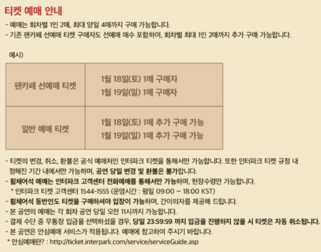 예매 시 유의해야 할 사항으로는, 티켓 오픈 이후 7일 간 무통장 입금 결제가 불가능하다는 점입니다.